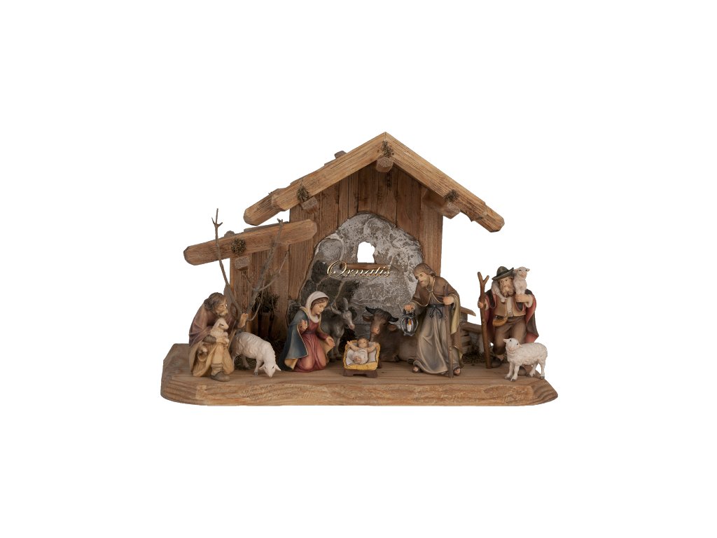 Drewniana ręcznie robiona szopka bożonarodzeniowa, w której znajdują się Święta Rodzina, pielgrzymi, osioł, wół i owca. Zestaw do szopki zawiera łącznie 8 znaków. Szopka sprzedawana jest w rozmiarach 10 cm. Ta tradycyjna szopka wykonana jest z drewna i oferowana w wersji malowanej farbami olejnymi. Do produkcji szopki używane jest tylko wysokiej jakości drewno, a mistrzowska rzeźba jest dopracowana w najdrobniejszych szczegółach. Szopkę drewnianą można rozbudować o inne figurki zgodnie z aktualną ofertą.